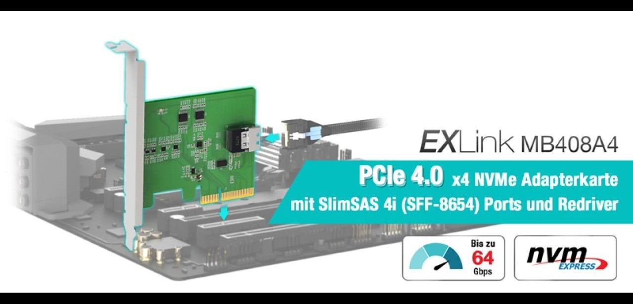 EXLink MB408A4 bietet flexible Testumgebung für Server-Workstation PCIe NVMe